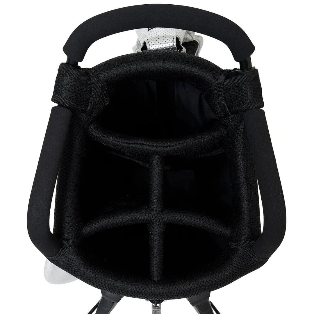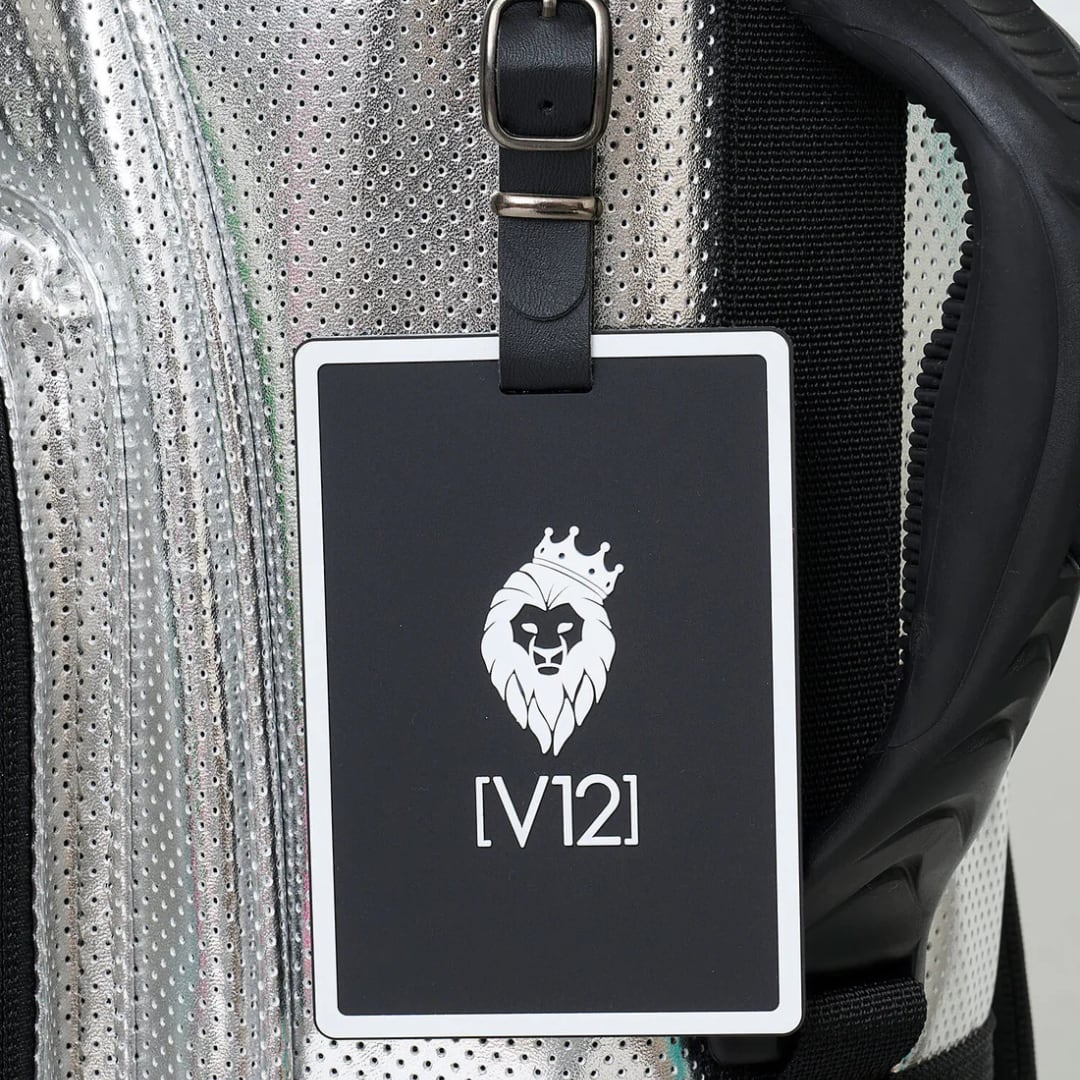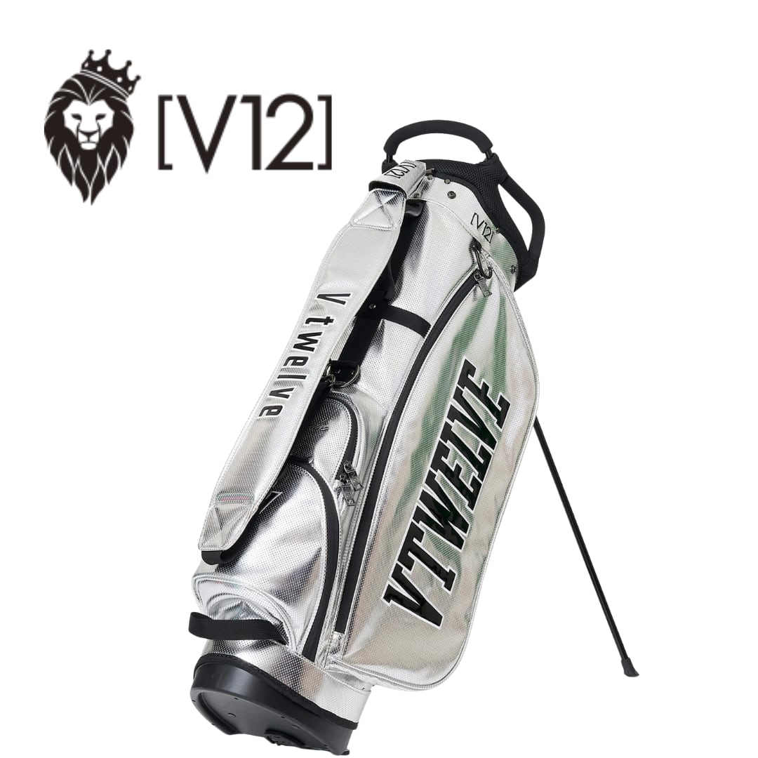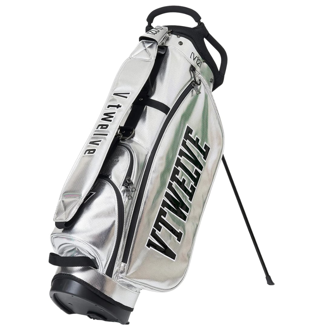 さまざまなV12ロゴをコントラストで表現した9インチのスタンドキャディバッグ。