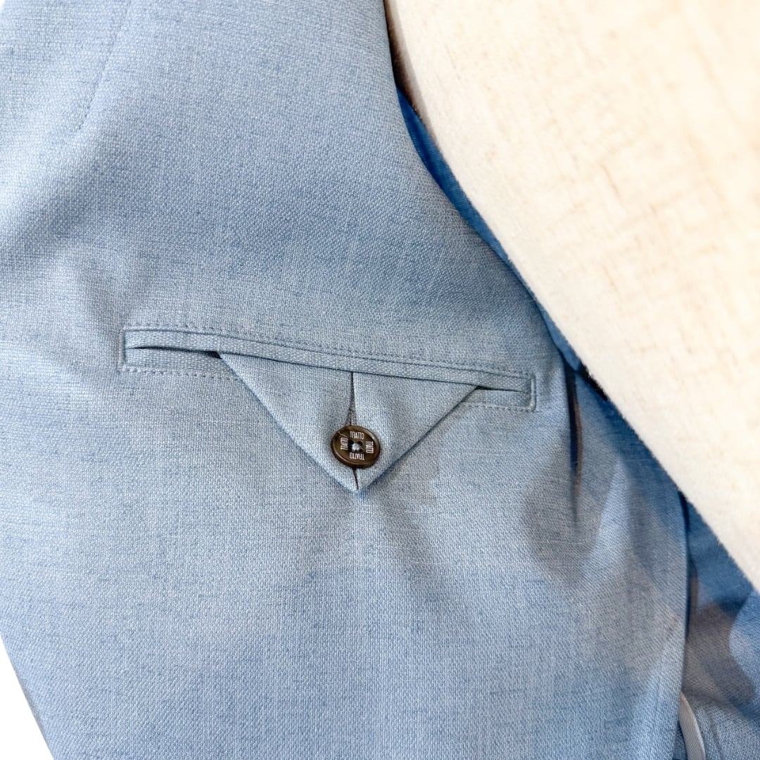 内側の仕様や飾りステッチにAMFを使用するなど、こだわりを感じさせる3つ釦の段返りジャケット。