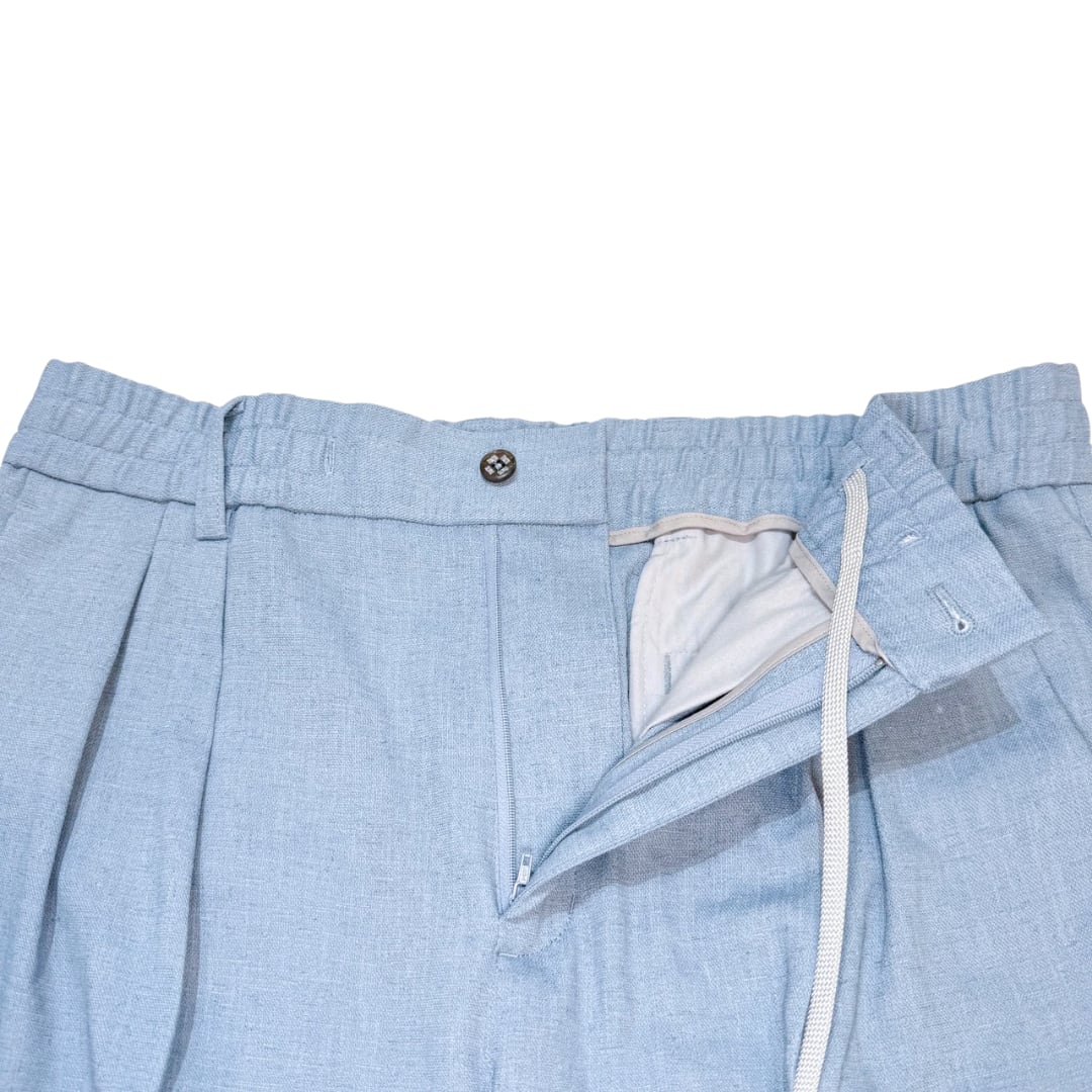 素材はさらりとしたドライな風合いとナチュラルな表情を持つ、麻調合繊素材。