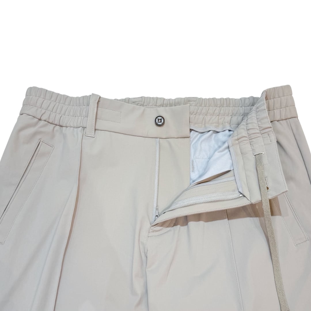 接触冷感や撥水やUVカットなど、多機能なハイテンション素材のピンタックイージーパンツ。