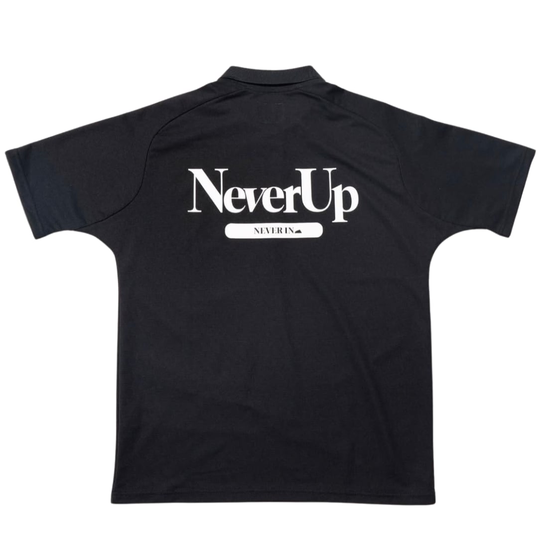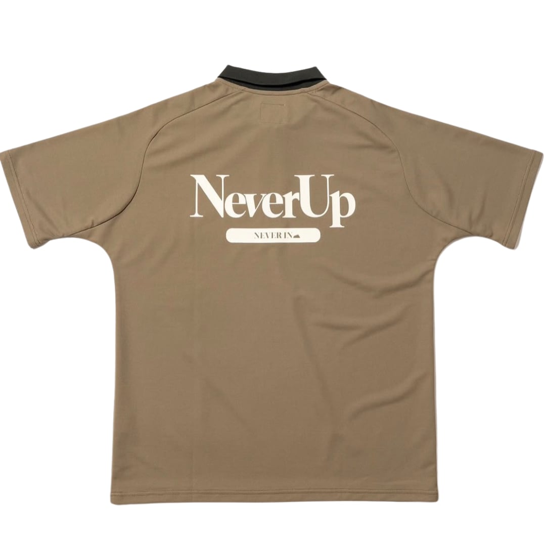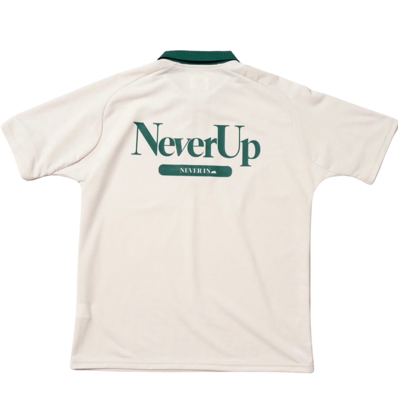 背面には「Never Up Never In / 届かなければ入らない」のメッセージを大胆にプリントし、