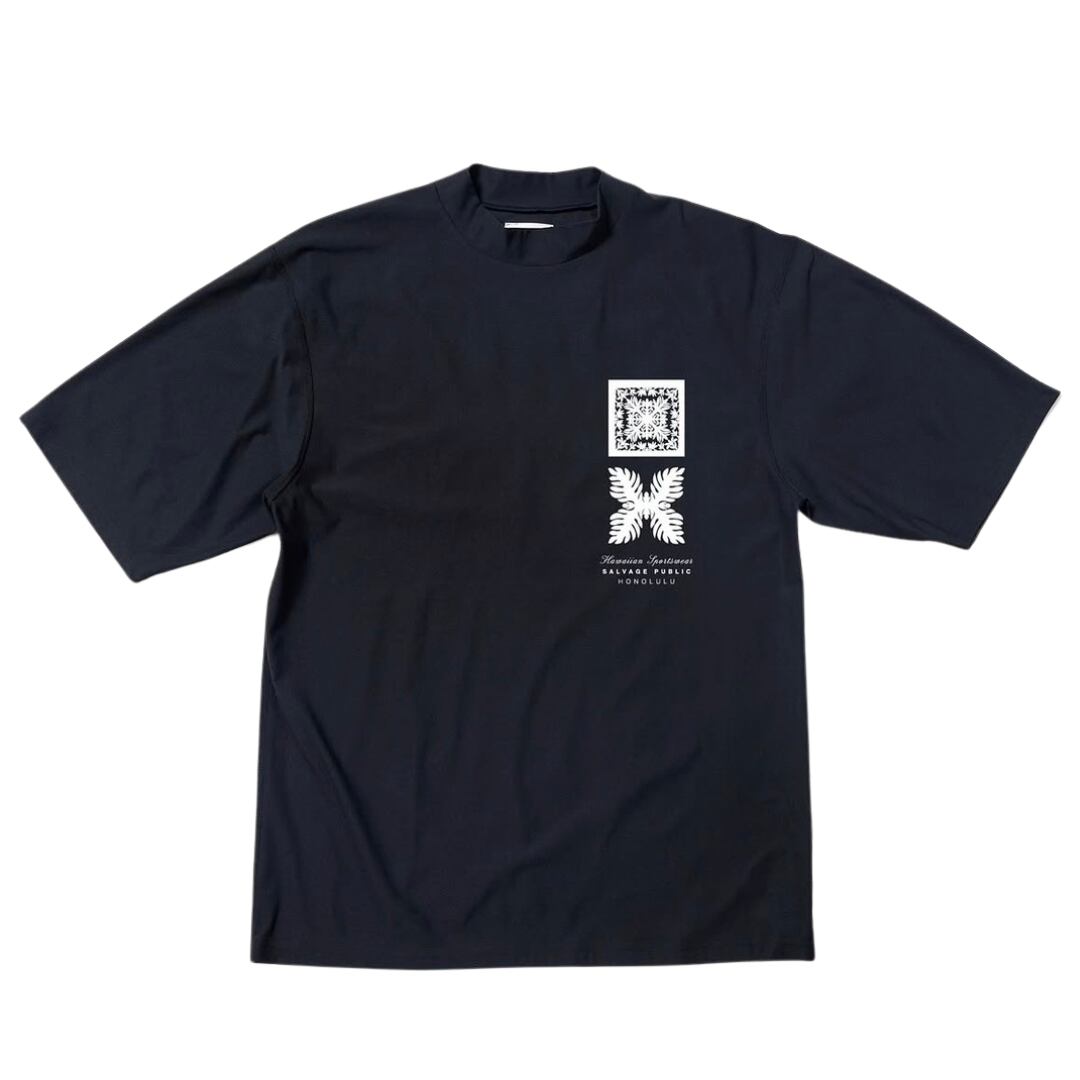 。 左胸と背面には、ハワイを感じさせるグラフィックを配置したデザインです。