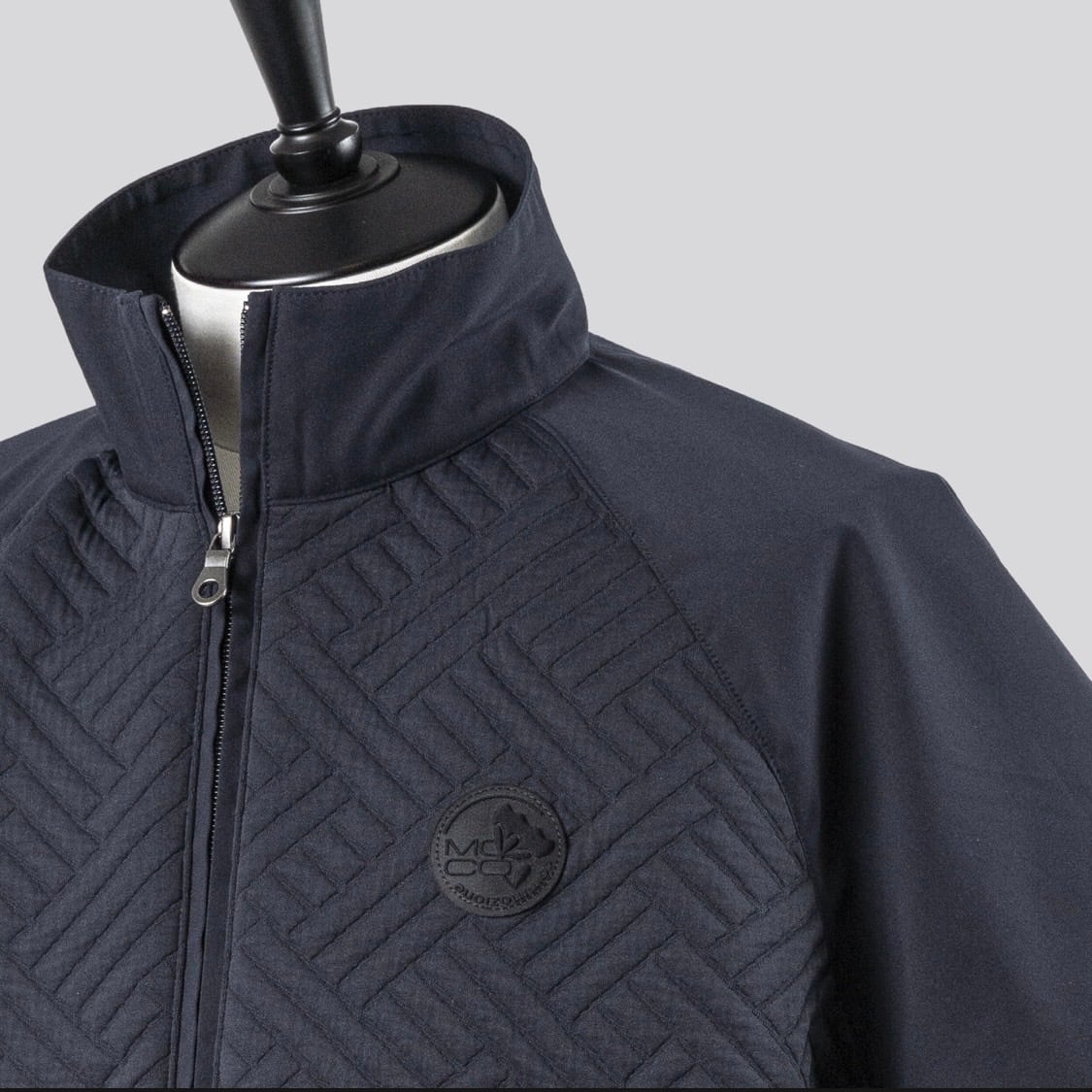 前身頃はキルトジャガードジャージ、身頃以外は撥水性・ストレッチ性を併せ持った機能ファブリック『MINOTECH®STウエザー』を使用。
