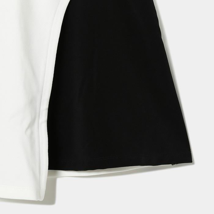 イレギュラーシルエットの立体的なフレアが特徴のバイカラーデザインスカート。配色使いとカッテイングと張りのある素材が存在感のある1枚。今シーズンの象徴のアイテムです。上品な表面感の素材を使用しており、スッキリ見えながらモダンなデザインでゴルフ場で映える事間違いありません。内側に起毛裏地を使用しているので暖かく快適にプレーを楽しんでいただけます。裾フレアは脚が長く綺麗に見える効果もあります。