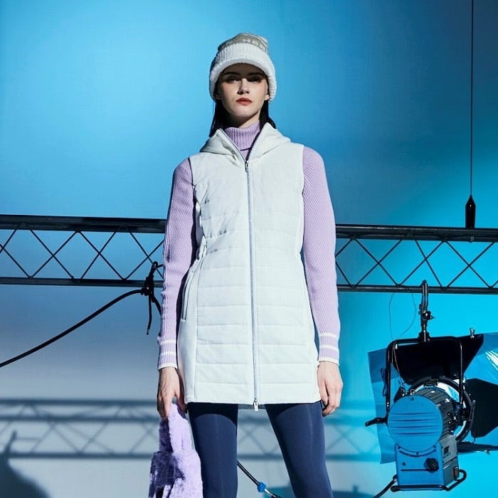 【レディース】 Heal Creek ヒールクリーク ストレッチタフタ中綿ベストワンピース レディース ゴルフ ゴルフウェア ジレ ハイネック モックネック ダブルジップ 撥水 ストレッチ 軽量 保温 裏地あり ウエスト調整可能 防寒 40/42 M/L 00269270 送料無料